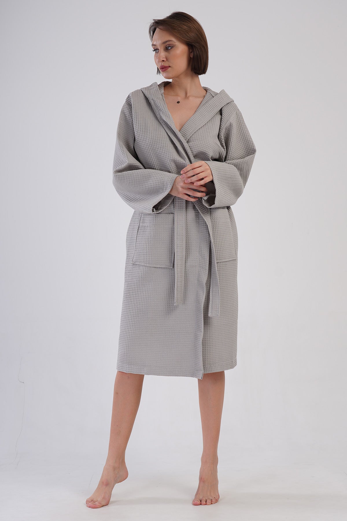 Woman Waffle Thin Hoodie Detail Bathrobe