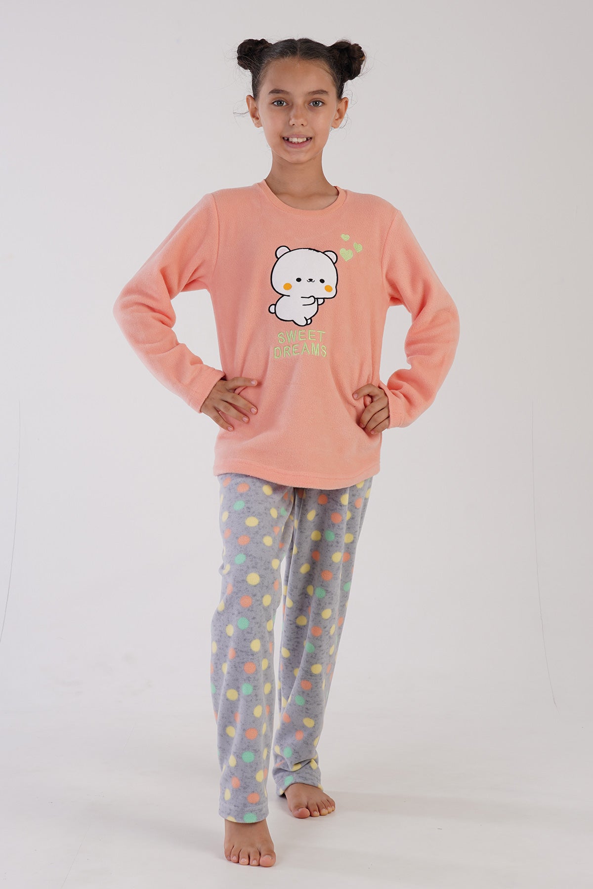 Kids' Fleece Colorful Polka Dot Pyjama Set