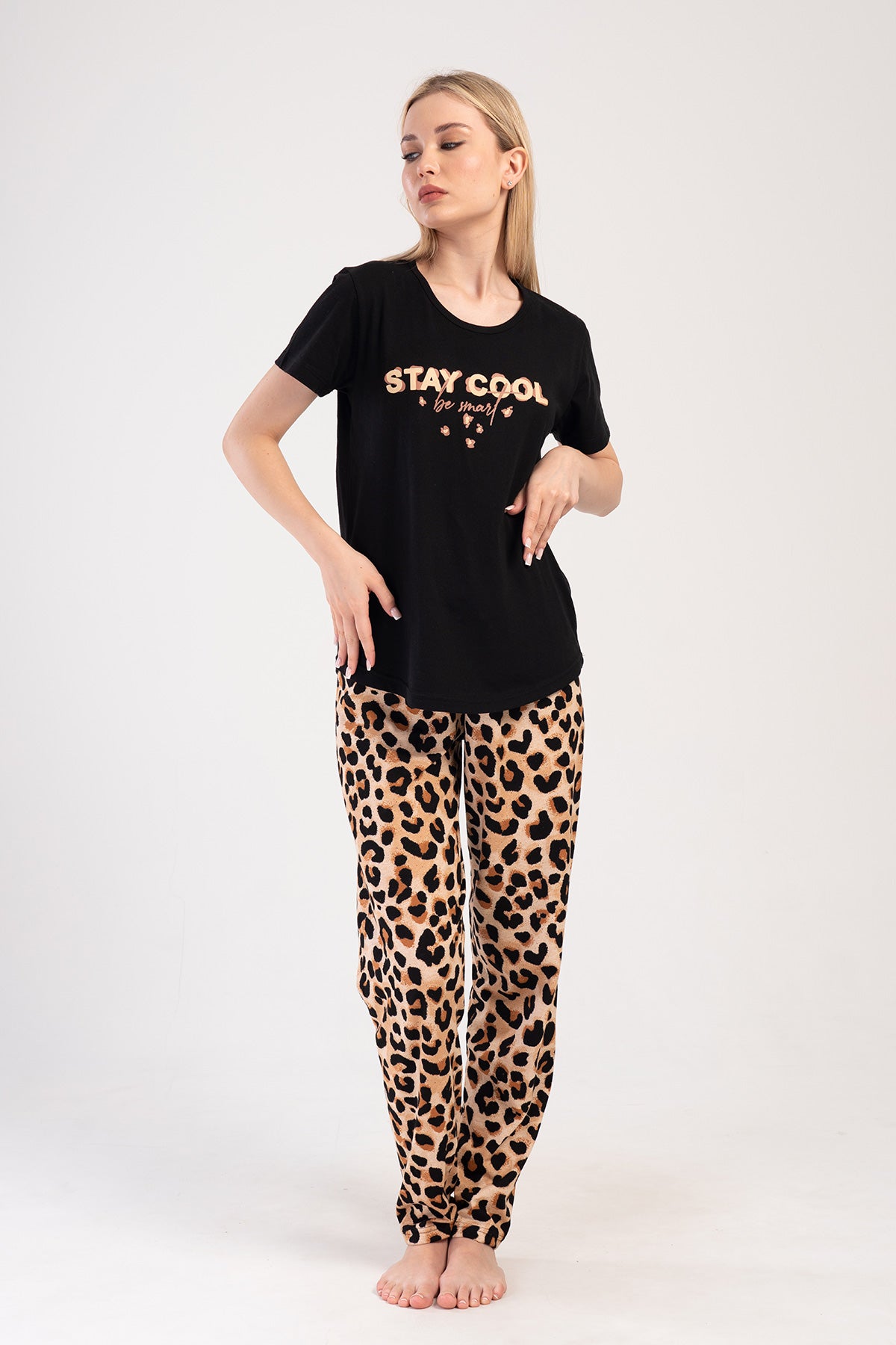 Woman Leopard Short Sleeve O Neck Pyjama Set