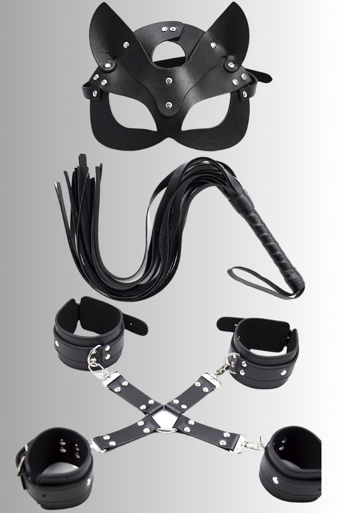 Anastasia Siyah Çapraz Kelepçe Maske Ve Kırbaç Harnes Fantezi Aksesuar Set 007