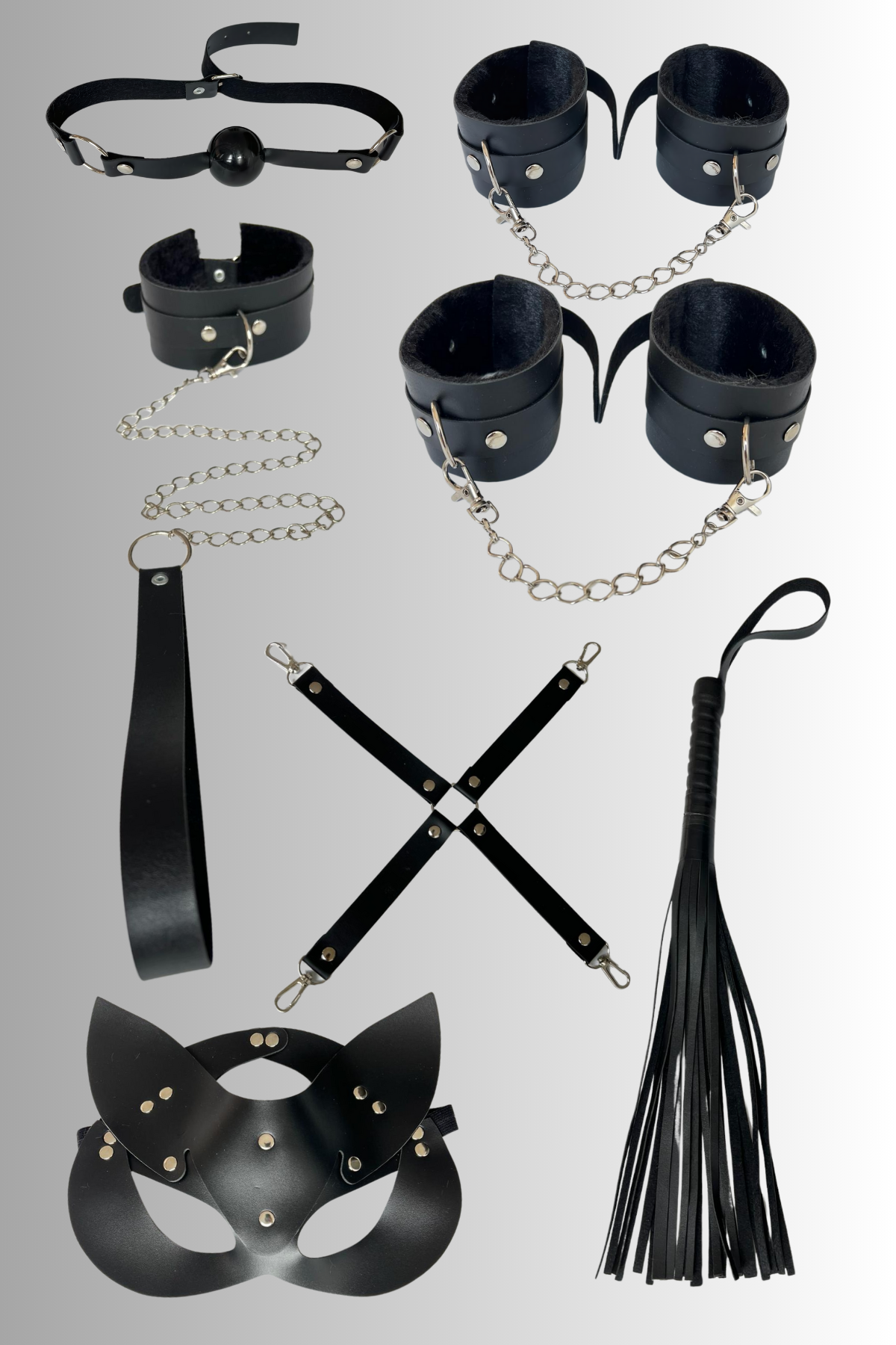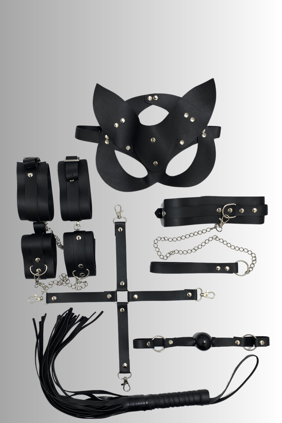 Anastasia 7'Li Harness Siyah Fantezi Kelepçe Kırbaç Tasma Içi Tüğlü Aksesuar Seti 700325